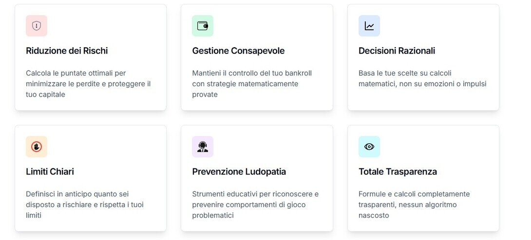 Giadabet è dedicato a fornire strumenti di calcolo per le scommesse sportive, progettati per aiutarti a scommettere in modo responsabile. La nostra missione è ridurre i rischi e le perdite legate al gioco, fornendo risorse utili e informazioni per affrontare la ludopatia. Con Giadabet, puoi goderti il brivido delle scommesse mantenendo il controllo e la consapevolezza delle tue scelte.